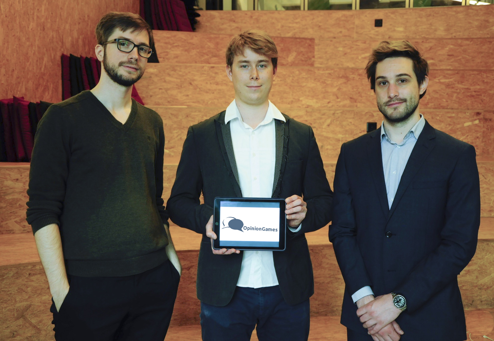 Aus einer Masterarbeit an der Zürcher Hochschule der Künste entstanden, entwickelt das Startup OpinionGames Smartphone- und Browserspiele zur Vermittlung und Meinungsbildung politischer und gesellschaftlicher Themen. Das Team besteht aus Benjamin Lemcke (Gründer und CEO), Sebastian Imbach (Grafik und Entwicklung) und Christian Enzler (Design und Marketing).