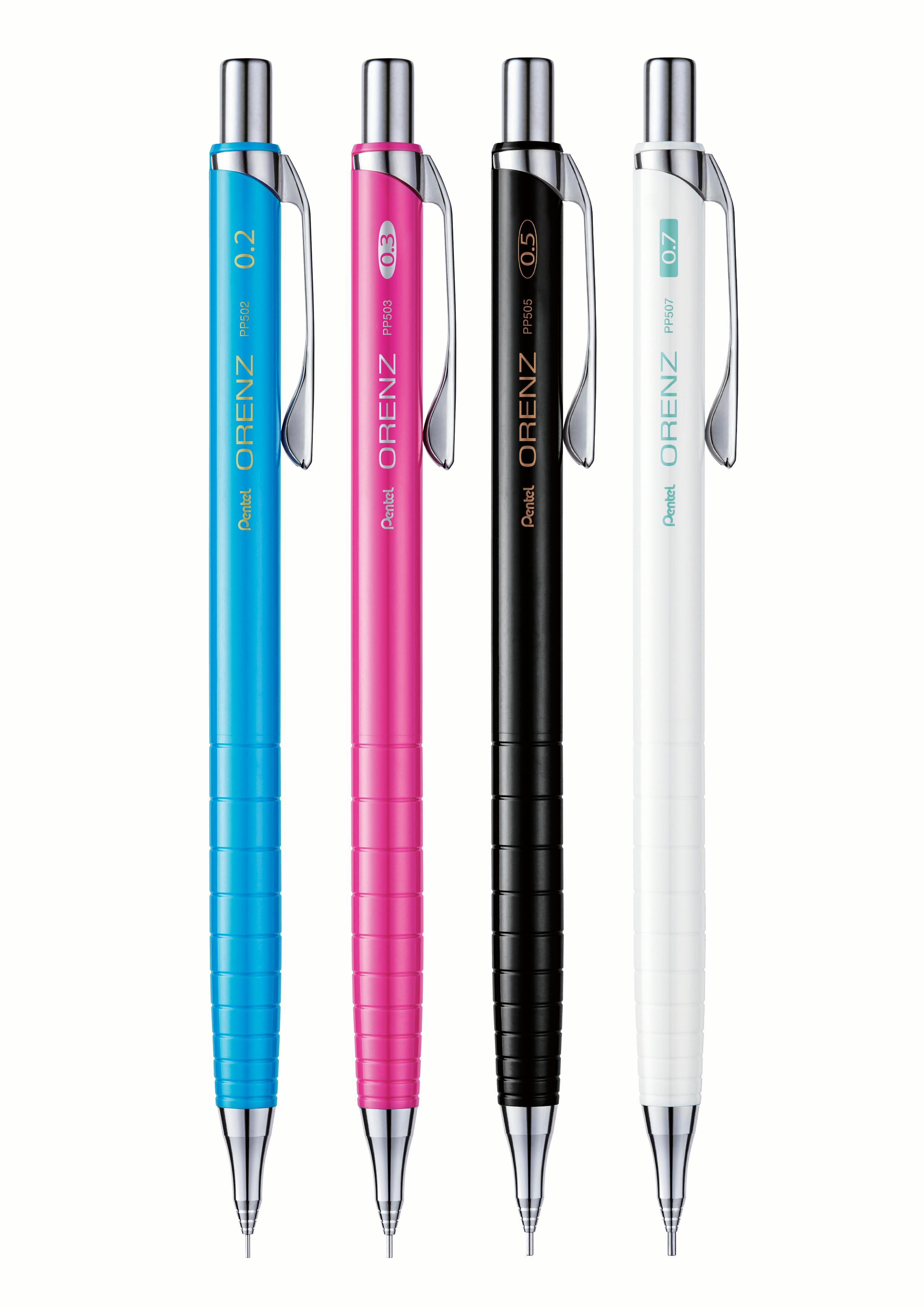 Le producteur d'instruments d'écriture de renom, le japonais PENTEL, réinvente le porte-mine nommé ORENZ. Le secret de cet astucieux « système anti-cassure » se trouve dans la pointe: à mesure que la mine se raccourcit, la pointe glisse automatiquement en arrière avec la mine et empêche la mine de se casser, même les mines fines de 0.2mm ne se rompent pas !