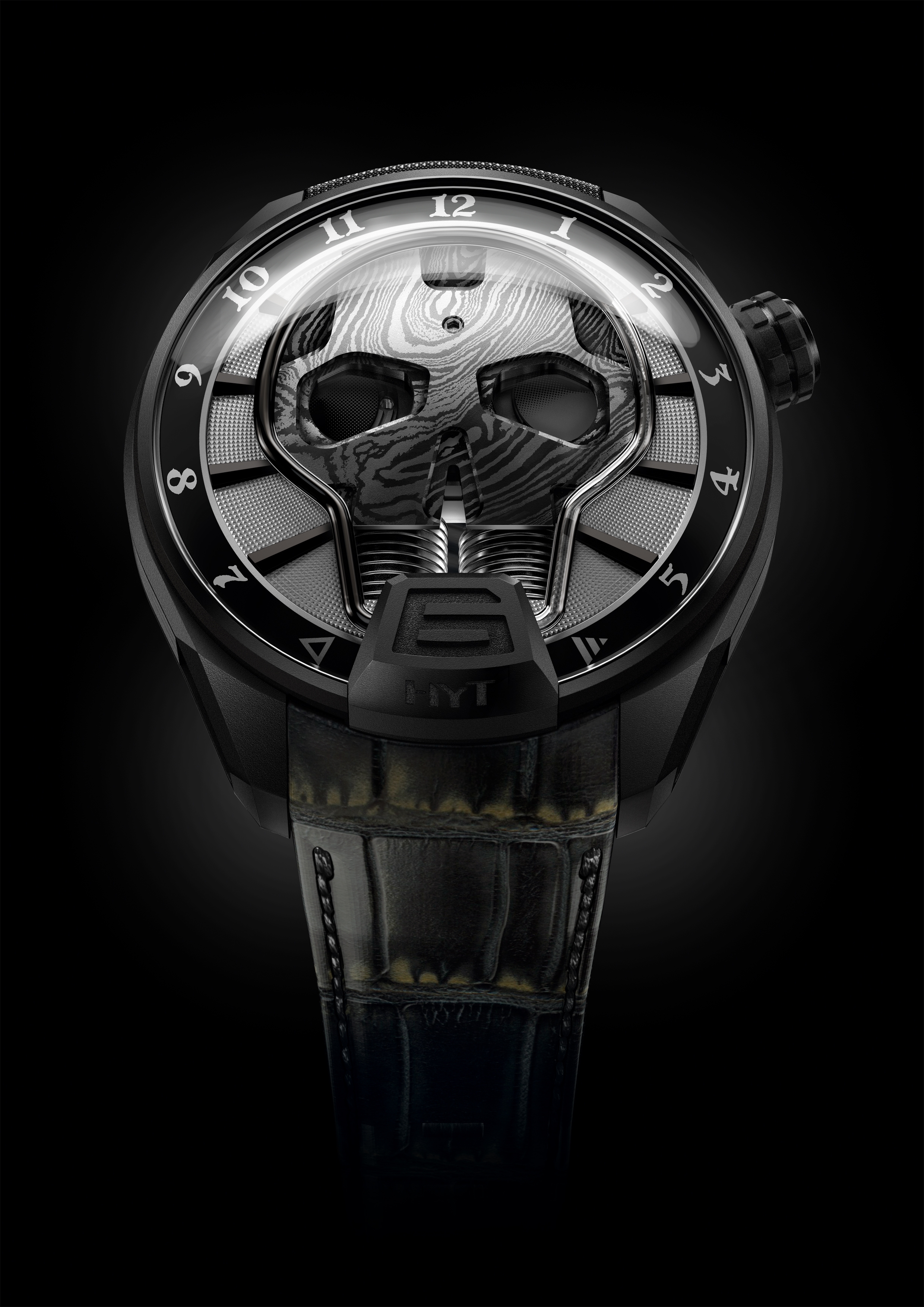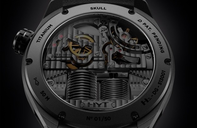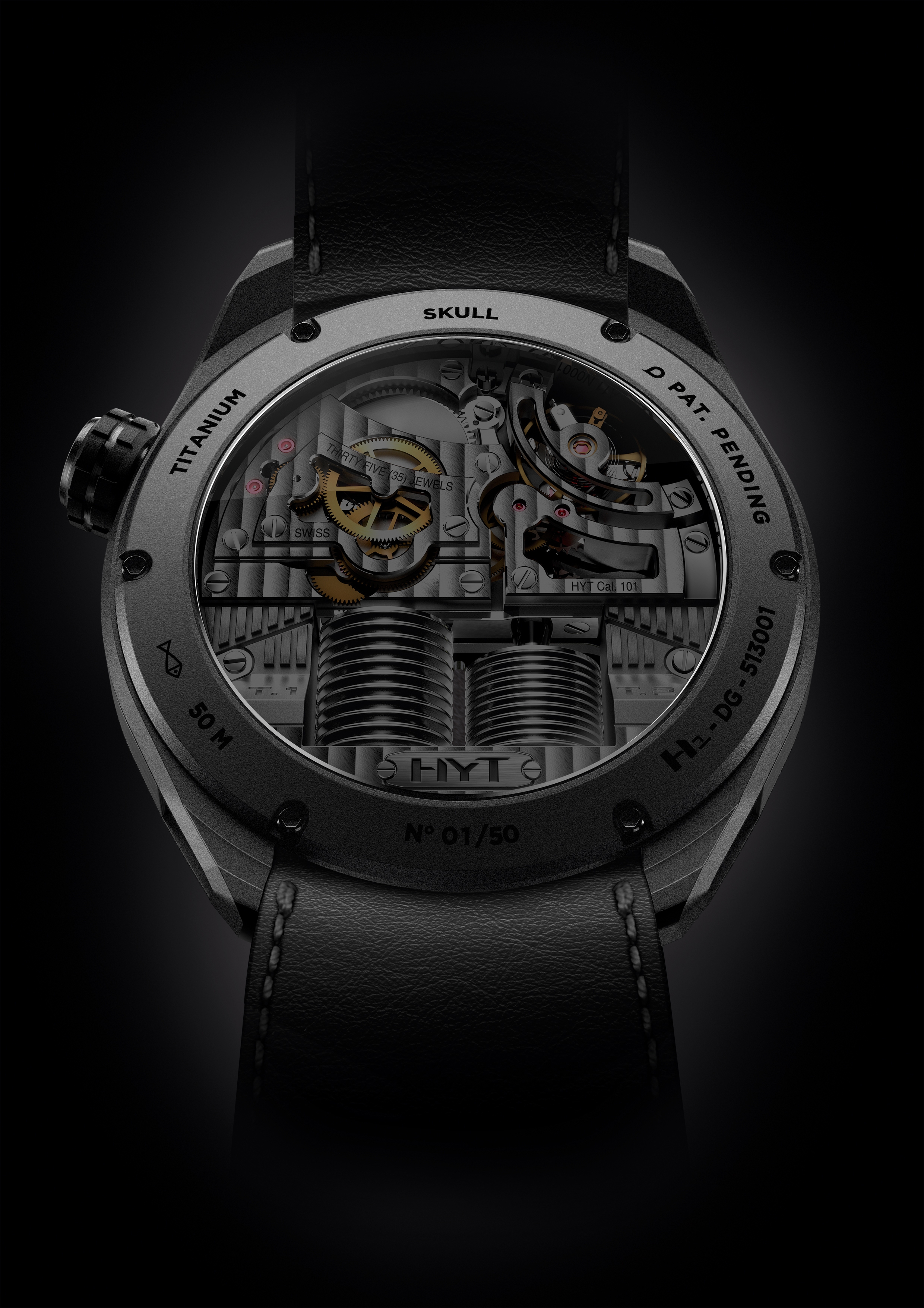 Man könnte meinen, dass die Skull Bad Boy auf dem 2015 von HYT als zentrales Element eingeführten Schädel aufbaut. Aber dem ist nicht so: Der kreative Ansatz beruht vielmehr auf dem neuen schwarzen Fluid, das diesen umfliesst.