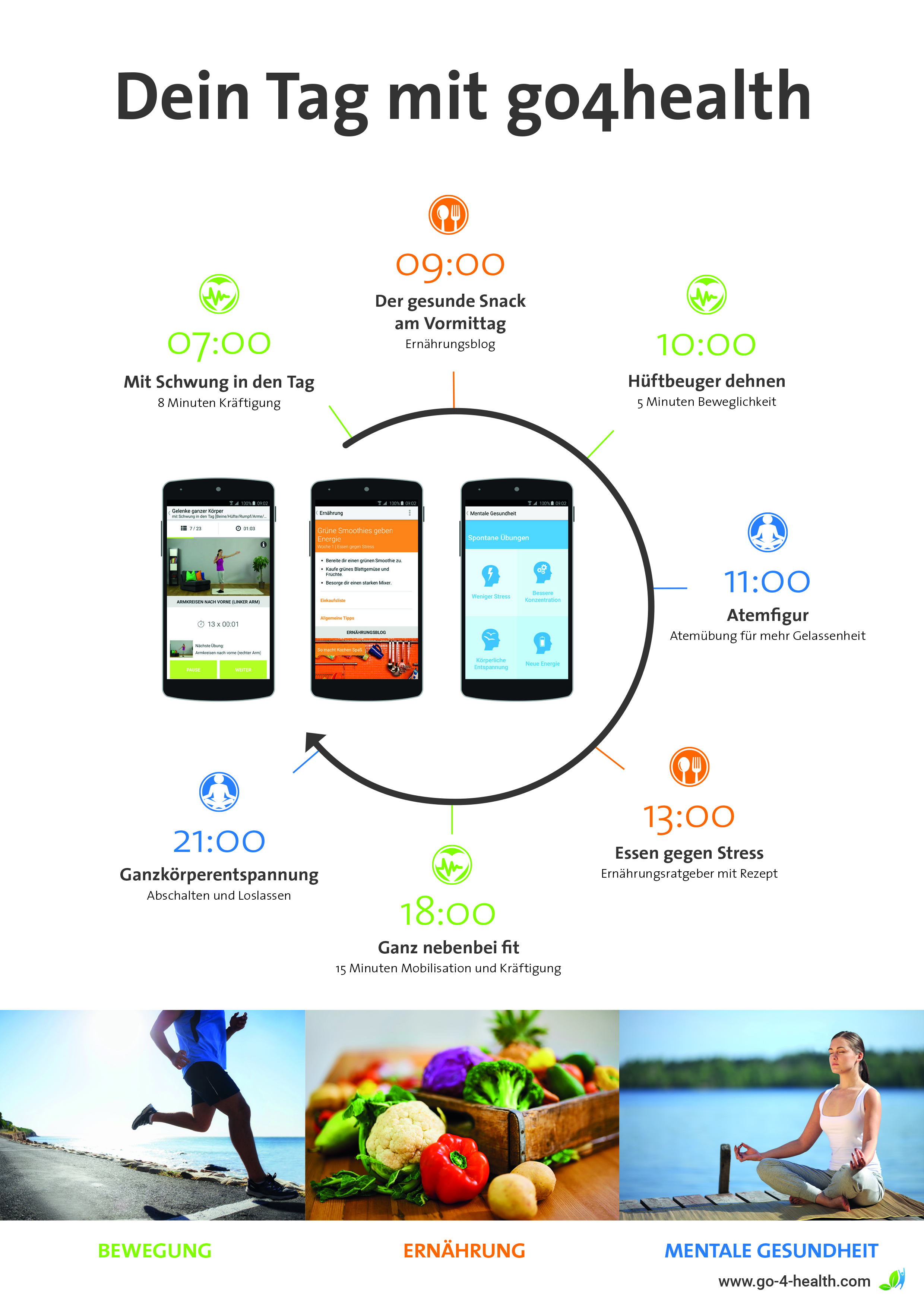 Die go4health GmbH hat gemeinsam mit den Experten der FLOW Technologies GmbH nach einer Möglichkeit gesucht, wie insbesondere das betriebliche Gesundheitsmanagement für Unternehmen verschiedener Größen und Branchen einfach und vor allem zeitgemäß umgesetzt werden kann. Basierend auf einem ganzheitlichen Ansatz aus Bewegung, Ernährung und mentaler Gesundheit wurde von Sportwissenschaftlern, Ernährungsexperten und Psychologen ein flexibles Angebot erarbeitet, das auf die individuellen Bedürfnisse und spezifischen beruflichen Anforderungen der MitarbeiterInnen Rücksicht nimmt. Mit der go4health App und dem Webportal können die Nutzer Bewegungsübungen mit Videoanleitungen, Tipps zur gesunden Ernährung sowie durchdachte Mentalübungen, unterstützt durch hochwertige Audiodateien, einfach in den Arbeitsalltag integrieren. Die PDP Holding GmbH hat mit ihrer finanziellen Beteiligung und Unterstützung wesentlich zur erfolgreichen Markteinführung beigetragen.