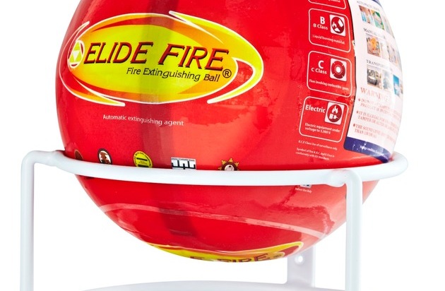 Der Elide Fire Löschball ist als innovative Ergänzung zum herkömmlichen Feuerlöscher ab sofort auch in Deutschland erhältlich. Der Ball wird mit sicherem Abstand zum Feuer in den Brandherd geworfen oder gerollt und löst sich mit einem Warnton von 120 Dezibel selbst aus, sobald er länger als drei Sekunden mit offenen Flammen in Kontakt kommt. Er senkt sofort die Temperatur um 400 Grad Celsius und erstickt das Feuer im Umkreis von 35 Kubikmetern. Umwelt, Gesundheit und Gegenstände in der Umgebung sind dabei nicht gefährdet. Für Rund-um-die-Uhr-Sicherheit - auch in Abwesenheit - wird der Löschball an Orten mit erhöhter Brandgefahr fest installiert und aktiviert sich im Brandfall selbstständig.