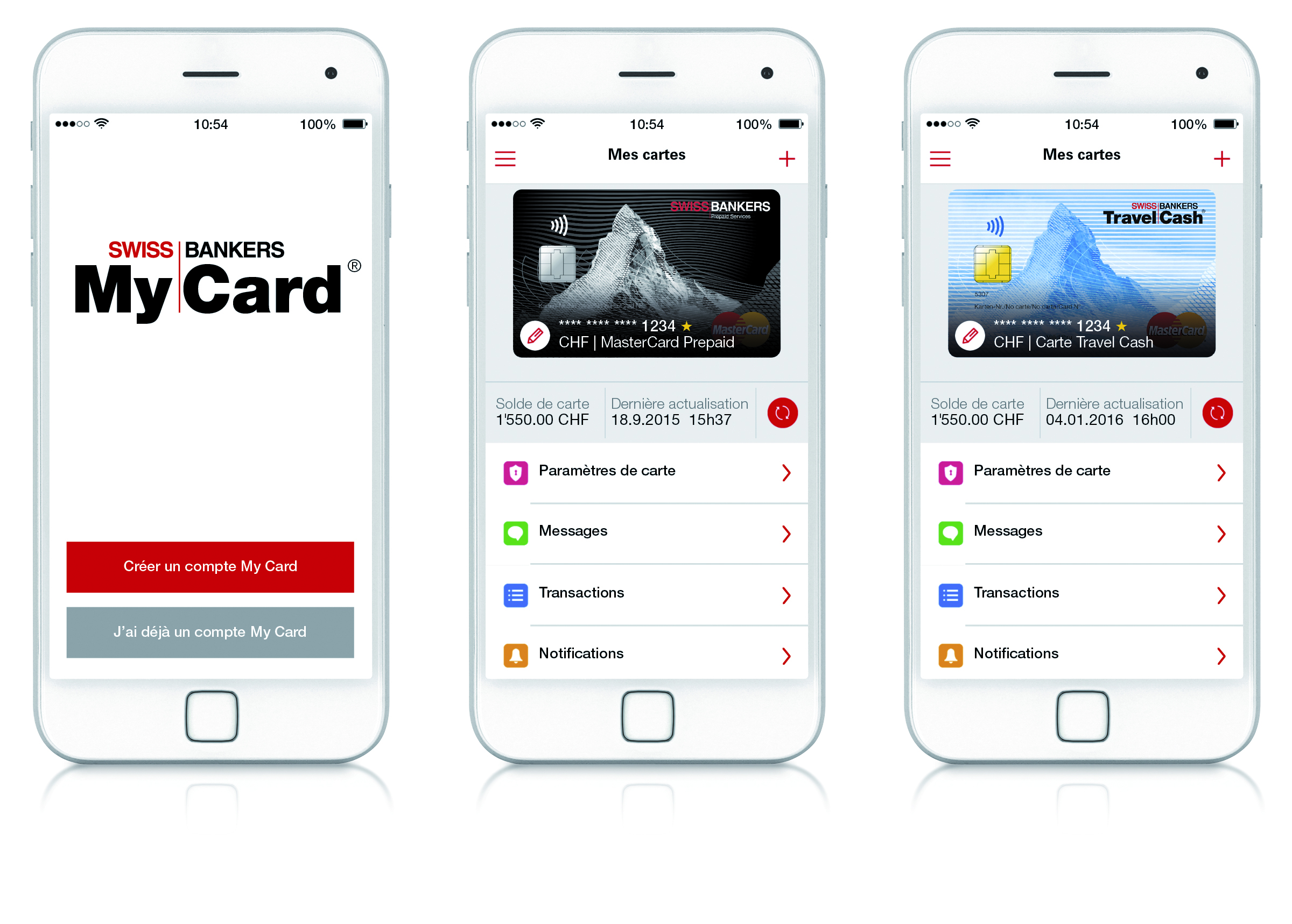 L'app «My Card» fonctionne avec les cartes Travel Cash et MasterCard Prepaid de Swiss Bankers Prepaid Services. Elle peut être téléchargée gratuitement dans App Store ou Google play. Le Service SMS en option est facturé au prix forfaitaire de CHF 10.- par année (pour notifications sans connexion Internet).