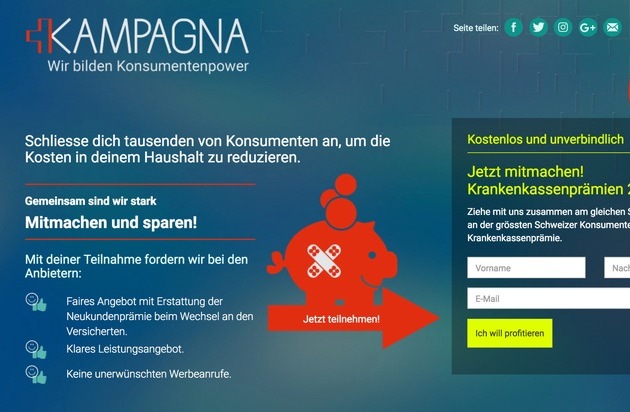 Im Kampf gegen die stetig steigenden Krankenkassenprämien startet heute Kampagna.ch den Startschuss mit dem Aufruf an alle Schweizer Haushalte! Wer mitmacht, setzt sich aktiv gegen die stetigen Prämienerhöhungen ein.