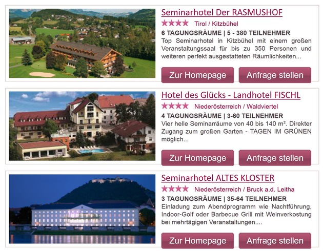 Neues ePortal für Seminar- und Tagungshotels in Österreich - BILD