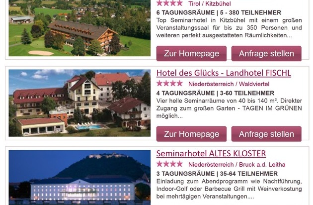 Neues ePortal für Seminar- und Tagungshotels in Österreich - BILD