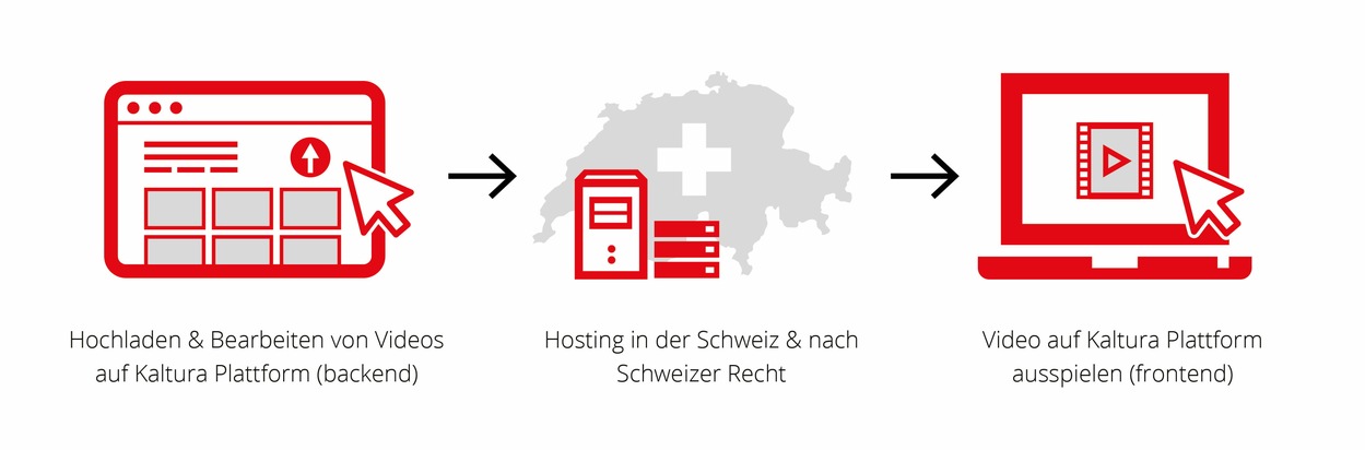 Mit der führenden Videoplattform von Kaltura und der leistungsstarken Media Cloud Infrastruktur von SWISS TXT können europäische Kunden ihrem Zielpublikum in den Bereichen Aus-/Weiterbildung, Unternehmenskommunikation und Medien ein einzigartiges Videoerlebnis anbieten. Die hochmodernen Rechenzentren der Media Cloud befinden sich in der Schweiz und entsprechen sämtlichen EU-Bestimmungen bezüglich Datenschutz und Privatsphäre.
