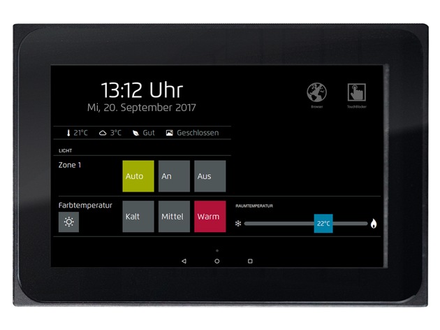 Die multitouch-fähigen Bedienpanels der Luna-Serie sind mehr als nur Wandbildschirme. In ihnen schlummern leistungsfähige Dual-Core-Prozessoren für Windows-, Android- oder Linux-Anwendungen. Die Panels sind zudem mit Mikrofon, Helligkeitssensor sowie USB- und Ethernet-Anschlüssen ausgestattet.