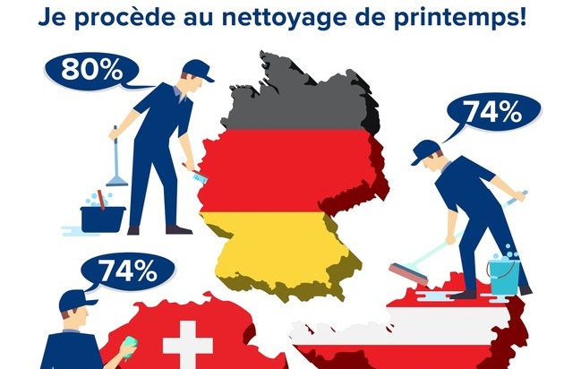 Pour de nombreuses personnes, l'arrivée du printemps est un bon moment pour nettoyer à fond son logement. Une étude effectuée par durgol, le leader du marché des détartrants en Suisse et en Autriche, offre une meilleure compréhension des habitudes de nettoyage des Suisses, des Allemands et des Autrichiens en livrant des résultats surprenants.