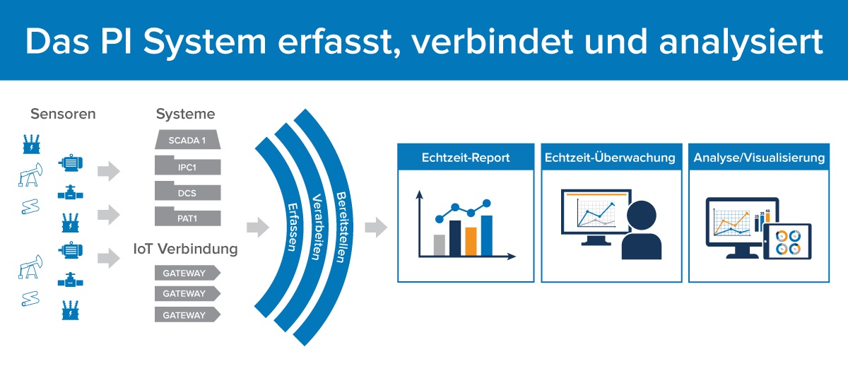 OSIsoft stellt eine offene Infrastruktur für Unternehmen zur Verfügung die es erlaubt, sensorbasierte Daten, Fertigungsanlagen und Personen zu verbinden und einen Echtzeit-Überblick zu allen Prozessen ermöglicht. Das PI System von OSIsoft versetzt Unternehmen der unterschiedlichsten Branchen, wie z.B. Rohstofferkundung und Förderung, Fertigung und Produktion, Prozess- und Fertigungstechnik, Vertriebs- und Serviceleistungen, in die Lage, ihre Abläufe durch die Nutzung von Datenströmen zu optimieren und zu ergänzen.