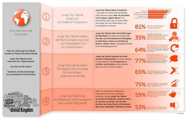 Kontrollierte Transparenz ist in den Augen junger Top-Talente ein wichtiger Erfolgsfaktor. Unternehmen mit einer Kultur, in der Informationen frei fließen können und Vertraulichkeit die Ausnahme ist, profitieren ihrer Meinung nach langfristig.