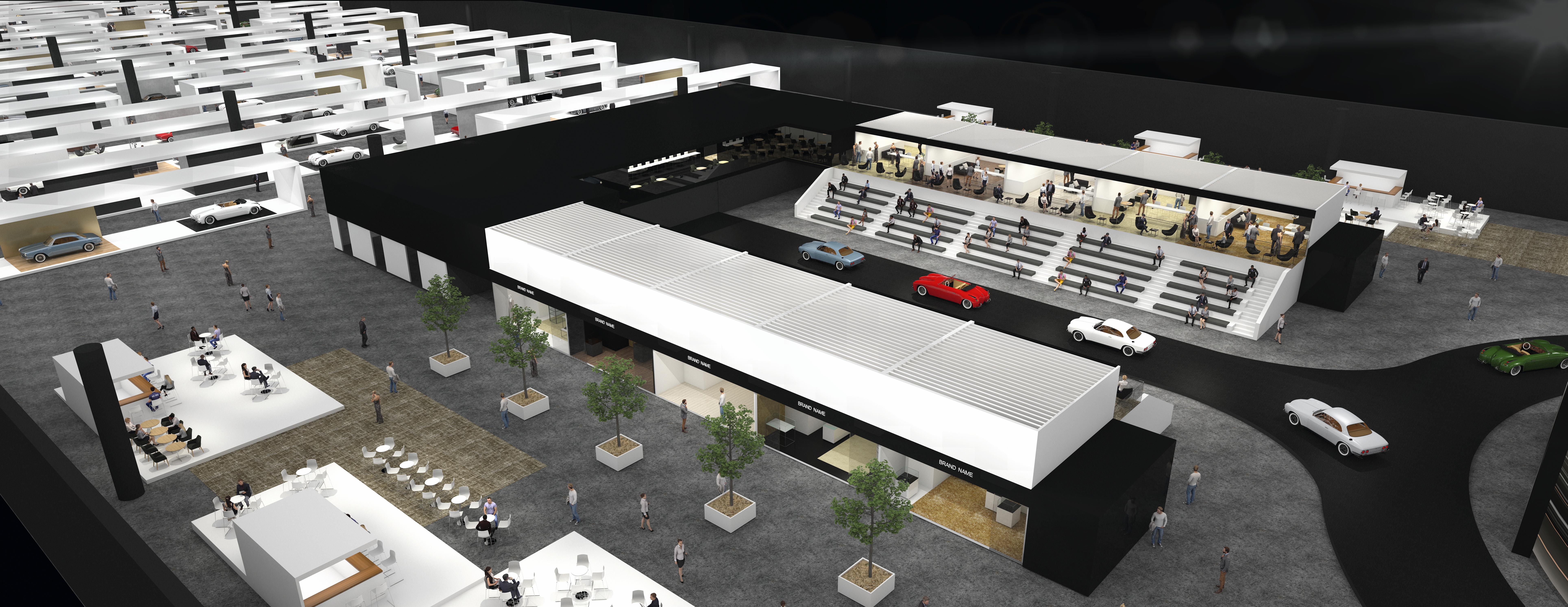 Die Grand Basel 2018 präsentiert aussergewöhnliche Automobile in einem aussergewöhnlichen Rahmen: Das Berliner Designbüro Blue Scope entwickelte ein einheitliches Architektur- und Ausstellungskonzept sowie ein Corporate Design in konsequent zeitgenössischer Formensprache. Das Design ist ein kühner Bruch mit dem meist nostalgischen Ambiente konventioneller Automobilveranstaltungen und erlaubt eine Präsentation und Betrachtung der Objekte in der Qualität moderner Museen.