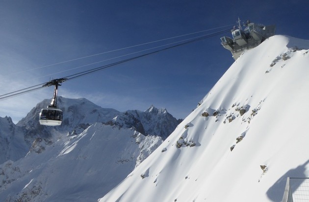 Die neuen Mont Blanc-Seilbahnen befinden sich in Courmayeur, im Herzen der Aosta-Tal-Alpen, und wurden im Juni 2015 eröffnet. Sie bieten eine sensationelle Fahrt mit unerreicht umfassendem Ausblick auf die majestätischen Gletscher und erreichen einen extrem gipfelnahen Punkt der Mont Blanc-Gruppe. Hier verbinden Tiefschneeabfahrten und alpinistische Strecken die Region mit Frankreich und der Schweiz.