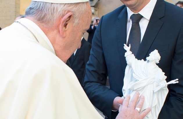 Als besonderes Zeichen der Wertschätzung der sakralen Kunst hat die Manufaktur Meissen dem Heiligen Vater Papst Franziskus am 24. Januar im Vatikan den Apostel Petrus aus Meissener Porzellan überreichen dürfen. Im Rahmen einer privaten Begegnung übergab Meissen-Geschäftsführer Georg Nussdorfer die Figur. Sichtlich bewegt nahm Papst Franziskus den Apostel Petrus entgegen und segnete die Figur. Sie wird nun einen besonderen Platz in den päpstlichen Räumen erhalten. "Es war eine große Ehre für Meissen und auch für mich persönlich, ein so bedeutendes Werk des sakralen Schaffens der Manufaktur an den Heiligen Vater zu überreichen. Seine Segnung ist eine einmalige Wertschätzung unseres künstlerischen Schaffens", so Nussdorfer nach dem Termin.