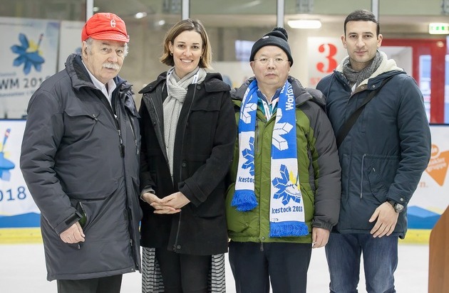 Bereits im August des Vorjahres wurde beim IOC in Lausanne/CH ein 600 DIN-A4 Seiten starker Antrag um Aufnahme eingebracht. Gespräche zwischen IFI Präsident Manfred Schäfer und IOC Präsident Thomas Bach verliefen grundsätzlich positiv. Nun muss die Sportdirektion diesen Antrag prüfen. Sollten alle Kriterien erfüllt und der Status "Olympic Movement Code" erreicht werden - worin alle Standards auf kontinentaler, nationaler und regionaler Ebene für alle Komitees, Verbände und die Mitglieder geregelt sind, könnte nach weiteren zwei Jahren das Eisstockschießen eine olympische Winterdisziplin werden. In diesem Zusammenhang machte sich die Australierin Jenny Mann - Head of Sport Partnerships & Coordination / IOC Sports Department - am Finaltag selbst ein Bild. Die 24. Olympischen Winterspiele finden 2022 in Peking/China statt. Ebenso hinter die Kulissen in Amstetten und Winklarn blickte daher der Präsident des Chinesischen Eisstockverbandes George Zhony.