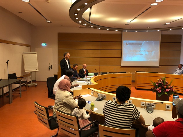 Insgesamt nahmen zahlreiche, sehr interessierte Teilnehmerinnen und Teilnehmer am Registration Day im Stuttgarter Rathaus teil. Beim Registration Day erstellen die geflüchteten Menschen vor Ort gemeinsam mit den Betreibern der Plattform die individuellen Profile. Neben Bürgermeister Werner Wölfle und den Geschäftsführern des Start-Ups waren auch Integrationsmanager, Ehrenamtliche und Geflüchtete vor Ort. Zurzeit leben rund 7.000 geflüchtete Menschen in Stuttgart in 114 Unterkünften in allen 23 Stadtbezirken.