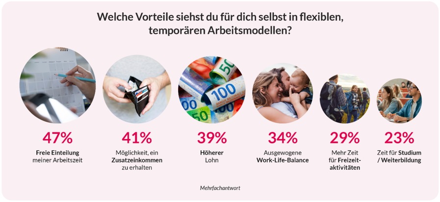 Die Ergebnisse zeichnen ein klares Bild: Starre Dienstpläne und festgefahrene Strukturen sind ein Auslaufmodell und das Verlangen nach Flexibilität ist real. Für viele geht es dabei nicht nur um die Freiheit, Dienste selbst zu gestalten, sondern auch um ganz praktische Vorteile. Vier von zehn Befragten sehen in flexiblen Jobs die Möglichkeit, mehr zu verdienen und fast die Hälfte schätzt die bessere Einteilung der Arbeitszeit. Ein Drittel gibt an, flexible Arbeitsmodelle vor allem wegen mehr Freizeit und besserer Lebensqualität zu wählen. Work-Life-Balance wird damit zur echten Währung im Gesundheitswesen.