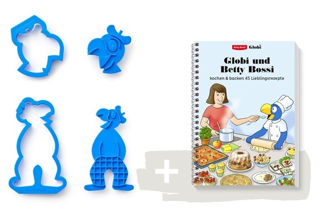 Zum Buch hat Betty Bossi zwei Globi-Guetzli-Ausstecher entwickelt, mit denen Kinder ihre eigenen Globi-Guetzli backen können – für die bevorstehenden Weihnachten oder das ganze Jahr. Das Kombi‑Set aus Kinderkochbuch «Globi und Betty Bossi» und Ausstecher ist auf bettybossi.ch/globibetty ab CHF 39.90 erhältlich.