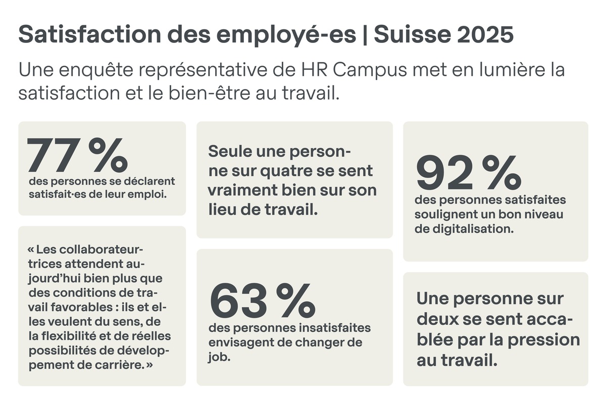 Une étude représentative menée par HR Campus explore la satisfaction et le bien-être au travail et met en lumière des leviers clairs pour améliorer le leadership, la digitalisation et la flexibilité.