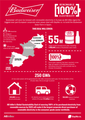 In der Geschichte ist dies der größte gesamteuropäische Solarstrom-Deal zwischen zwei Unternehmen, der 14 Brauereien von AB InBev in Westeuropa einschließt sowie über 50 Marken, die in 12 Ländern* gebraut und verkauft werden und zu denen auch die globale Marke Budweiser gehört.