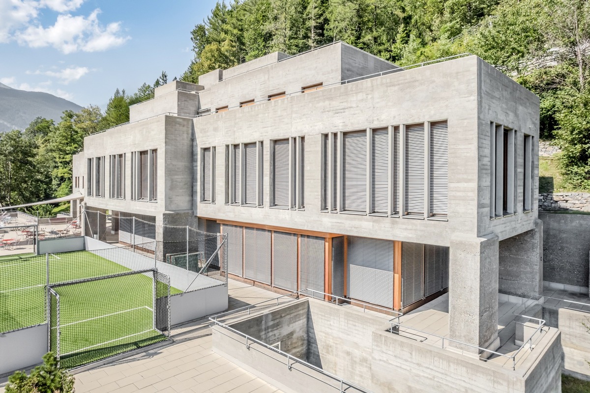 Avec la restauration complète de l'internat de l'École cantonale des Grisons, un solitaire architectural du modernisme d'après-guerre de Coire a retrouvé une nouvelle jeunesse. Le bâtiment est considéré comme l'un des rares témoins contemporains importants de la direction sculpturale de cette époque ; sa figure sculpturale en béton apparent, la réaction à la topographie difficile et l'influence de Le Corbusier sur la conception de la lumière et des proportions lui confèrent son caractère singulier. Les brise-soleil orientables de Griesser Aluflex® utilisés s'inscrivent parfaitement dans cette logique architecturale : ils permettent une gestion douce de la lumière naturelle, soutiennent l'effet de filigrane de façade tout en créant un plus grand confort visuel et thermique dans la vie quotidienne du Konvikt.