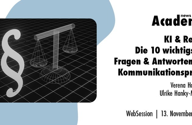 In diesem Webinar diskutieren Rechtsanwältin Verena Haisch und Kommunikationsprofi Ulrike Hanky-Mehner praxisnah die wichtigsten Fragen an der Schnittstelle von KI, Recht und Kommunikation. Sie erhalten konkrete Einblicke und Umsetzungstipps für Ihre Arbeit im Kommunikationsalltag.