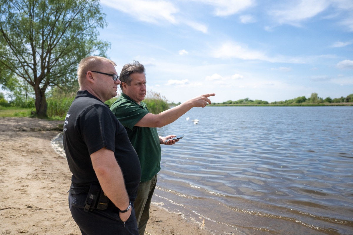 Für eine Ortsbegehung treffen wir auf der polnischen Seite in dem Örtchen Widuchowa auf Norman Ebert, dem Projektkoordinator von der Hochschule für nachhaltige Entwicklung in Eberswalde und auf den Leadpartner des Projektes Wojtek Zbaraszewski von der Westpommerschen TU, Stettin. Treffpunkt ist gegenüber vom Supermarkt, ein leicht zu findender Ort in dem sonst komplett ruhigen Dörfchen.