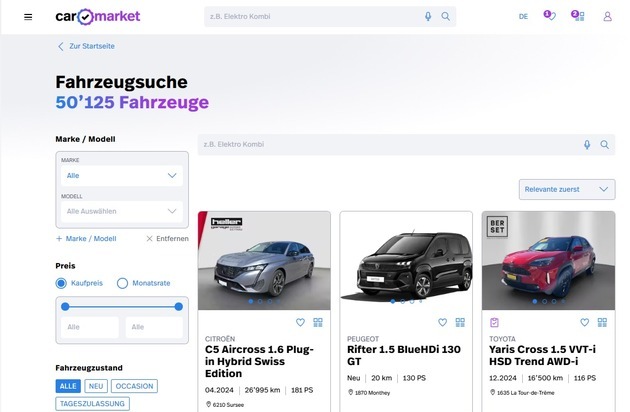 Carmarket überschreitet 50 000 gelistete Qualitäts-Fahrzeuge / Grosse Auswahl für Schweizer Kundschaft