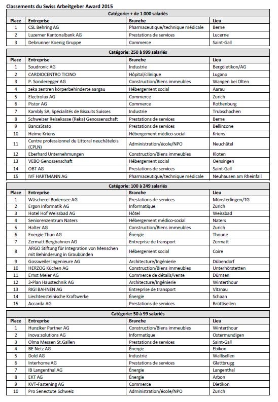 Les gagnants du Swiss Arbeitgeber Award 2015