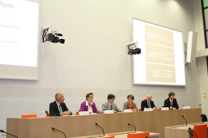 Communiqué de presseDepuis novembre dernier, un comité bourgeois contre un deuxième tube au Gothard s'est formé au Tessin / Un comité à l'échelon national s'est constitué à présent2015-06-08T12:06:22Berne (ots) - Le comité portant le nom « non ! Comité centre-droit contre le 2e tunnel au Gothard » s'est présenté aujourd'hui à l'occasion d'une conférence de presse à Berne. La coprésidence ainsi que les arguments qui selon les points de vue bourgeois plaident en défaveur du projet de loi du Conseil fédéral et du Parlement y ont été dévoilé. Les membres de la coprésidence sont les conseillers aux Etats Konrad Graber (PDC, LU), Thomas Minder (sans parti, SH) et Markus Stadler (PVL, UR), les conseillères nationales Isabelle Chevalley (PVL, VD), Maja Ingold (PEV, ZH) ainsi que Barbara Schmid-Federer (PDC, ZH). Font partie aussi de la coprésidence, deux représentants du PLR tessinois : Moreno Colombo, maire de Chiasso et Claudio Bordogna, ancien conseiller cantonal et directeur de banque. D'autres membres sont recherchés dans les cantons à présent. Alors que Konrad Graber parle d'un projet de loi non crédible à deux voies dont une seule devrait être mise en exploitation, Thomas Minder, lui, fait remarquer qu'un deuxième tube au Gothard est une agression contre la volonté populaire et voit de nouveaux risques découlant des poids lourds européens. Le représentant tessinois Antoine Turner souligne que la situation routière dans la partie méridionale du canton est aujourd'hui déjà intolérable et qu'un deuxième tube ne ferait qu'empirer la situation. Isabelle Chevalley estime qu'investir une telle somme d'argent sans en attendre une plus-value quelconque est un non-sens de la politique financière. Une solution de transfert et la NLFA assureraient la liaison avec le canton du Tessin. Une glissière centrale escamotable et le transfert du trafic de marchandises sur la NLFA permettraient d'augmenter plus rapidement le facteur sécurité qu'un 2e tube opérationnel dans 20 ans seulement, argumente Maja Ingold. Un deuxième tube en outre compromettrait le succès de la NLFA. Pour de plus amples informations, les personnes suivantes se tiennent à votre disposition :