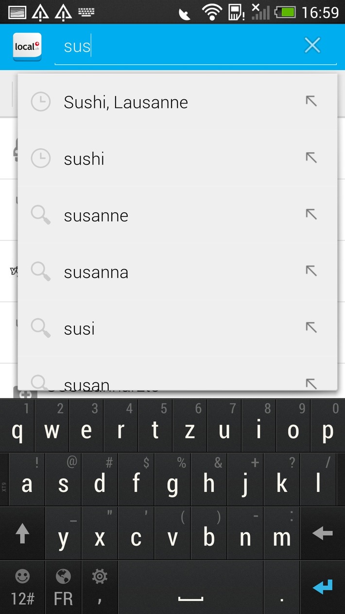 Outre la mise à jour et le passage à une identité visuelle en blanc de l'app local.ch pour Android, le champ de navigation, qui a également fait peau neuve, ainsi que la légèreté qui en émane, apportent tout autant leur pierre à l'édifice. On trouve donc encore plus facilement ce que l'on cherche. En plus d'un design plaisant, la mise à jour de l'app pour Android comporte de nombreuses innovations qui apportent un soutien optimal à l'utilisateur dans sa vie de tous les jours. Les termes connus sont suggérés automatiquement et des propositions des recherches précédentes apparaissent également. Pour tous ceux qui recherchent souvent des termes plus ou moins similaires, la recherche se montre ainsi encore plus agréable.