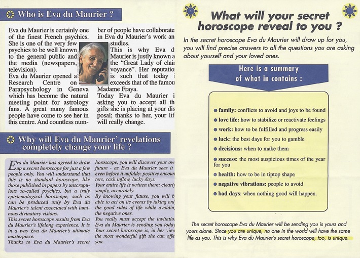 d'un horoscope personnalisé, que l'on peut commander auprès d'Eva du