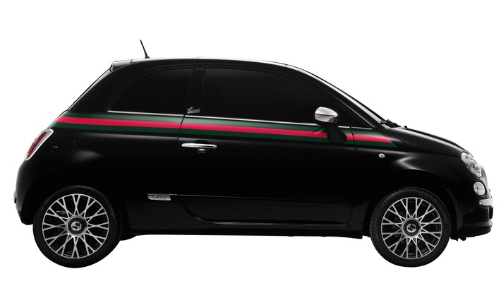 En cette année de 150e anniversaire de l'unification de l'Italie et de 90e anniversaire de Gucci, Fiat et le styliste italien annoncent avec fierté la création de la 500 by Gucci, une édition spéciale de l'emblématique Fiat 500 créée par Frida Giannini, directrice artistique de Gucci, en collaboration avec le Centro Stile de Fiat. Cette conjonction unique de talents des deux marques italiennes les plus réputées est une parfaite alliance de style et de maîtrise technique. Lancée pour l'ouverture de la Fashion Week de Milan, la 500 by Gucci apparaîtra aussi au salon international de l'automobile à Genève, du 3 au 13 mars, dans un pop-up store aménagé sur le stand Fiat.