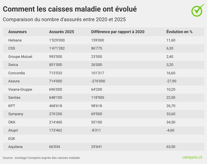 Assura, qui avait enregistré la plus forte perte de clients l’année dernière, semble avoir réussi à inverser la tendance. L’assureur a gagné 17 000 client·e·s, soit 2,44 %, et comptait 714 000 assuré·e·s en 2025. « Aquilana sert d’exemple à ne pas suivre : attirer de nombreux assuré·e·s avec des primes basses et les perdre à nouveau l’année suivante avec une forte augmentation des primes. Après avoir subi des pertes importantes ces dernières années, Assura a stoppé sa chute et renoue avec la croissance. L’exemple de cet ancien assureur à bas prix montre combien de temps il faut pour se repositionner avec des primes plus élevées et une meilleure qualité de service », déclare Felix Schneuwly. EGK n’a pas souhaité fournir d’informations sur la perte de clients.
