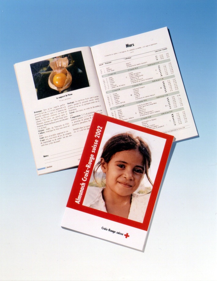 Communiqué de presseL'almanach Croix-Rouge suisse 2002 est arrivé2001-11-14T13:52:00Berne (ots) - Voir image: www.newsaktuell.ch/f/galerie.htx?type=obs Séduisante, captivante et variée : ainsi se présente la nouvelle édition de l'almanach Croix-Rouge suisse. L'art, la nature, les loisirs, la santé et la technologie y trouvent leur place, tout comme les conseils pratiques pour la vie de tous les jours. Au fil des pages, le lecteur découvre un univers haut en couleur et fascinant. Les principales données pour l'an 2002, les calendriers grégorien, juif et islamique apportent une foule d'informations utiles pour l'année à venir. Quand le litchi révèle-t-il sa pleine saveur, et à quoi faut-il être attentif à l'achat ? L'almanach Croix-Rouge suisse renseigne abondamment sur les vertus des fruits exotiques et ramène l'été dans la maison par des photos aux couleurs éclatantes. Il raconte aussi comment de joyeux pionniers anglais du ski ont fondé l'un des plus anciens clubs alpins d'Europe. Ou encore la solitude et la beauté naturelle d'une île à l'autre bout du monde. Il accompagne le jeune Passang sur le long chemin pour devenir médecin, ou « amchi », à l'école de médecine tibétaine à Shigatse, soutenue par la Croix-Rouge suisse (CRS). Dans cette publication qui l'accompagnera tout au long de l'année, le lecteur trouvera des indications utiles en matière de premiers secours ou de préparation d'une pharmacie de voyage, ainsi qu'un calendrier des pollens et des numéros de téléphone importants. Acheter l'almanach pour soi-même ou l'offrir à ses amis et connaissances, c'est la garantie de faire plaisir tout en accomplissant une bonne action. Le produit de la vente permet en effet à la CRS de venir en aide à des personnes dans le besoin à l'étranger et en Suisse. L'almanach est disponible en français et en allemand au prix de 15,80 francs auprès de la Croix-Rouge suisse, Rainmattstrasse 10, 3001 Berne, tél. +41 31 387 71 11, fax: +41 31 387 71 22, ou à l'adresse E-Mail info@redcross.ch Ce texte peut être consulté sur Internet: www.redcross.ch Contact: Anita Guthauser Permalink: