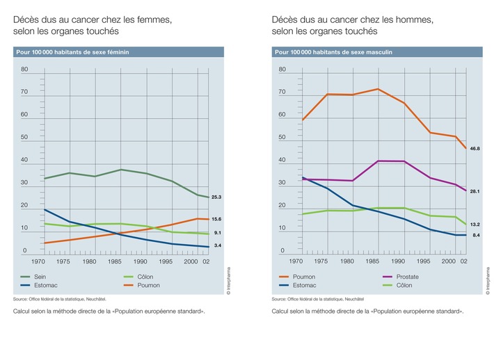 Taux de mortalité en recul pour tous les types de tumeurs - exception: le cancer du poumon