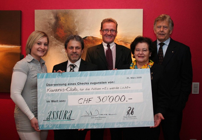 sous: http://www.presseportal.ch/fr/pm/100010518 -Assura SA a plus que doublé le montant des dons faits par ses assurés en faveur de l'action "Que la lumière soit" et remet une somme de Fr. 30'000.- au Kiwanis Club, l'organisation qui est à l'origine de ce projet. Dans le but d'aider les enfants du Ghana, Assura SA a collaboré à l'action "Que la lumière soit" du Kiwanis Club qui a pour objectif de récolter des fonds pour la Croix-Rouge afin de lui permettre d'opérer les enfants de cette région souffrant de la cataracte. La décision d'Assura SA de participer à cette initiative a été prise peu de temps après le lancement de son offre promotionnelle relative à la chirurgie correctrice de la vision qui permet à ses assurés de renoncer au port des lunettes grâce à ce mode opératoire au laser proposé à des prix très attractifs. L'idée consistait à inviter ces personnes - qui avaient bénéficié d'un rabais allant jusqu'à Fr. 2'000.- sur les coûts de ce type d'interventions - à faire un don pour ces enfants ghanéens. Pour chaque franc offert, Assura SA s'engageait à verser également le même montant en faveur de cette action. La générosité des assurés avait permis de rassembler près de Fr. 14'000.-. Lors d'une petite cérémonie organisée à Berne, la direction d'Assura SA a remis aux représentants du Kiwanis Club un chèque de Fr. 30'000.-. Assura SA est très heureuse d'avoir pu apporter sa contribution à cette initiative et remercie toutes les personnes qui se sont engagées en faveur de l'amélioration de la qualité de vie de cette population enfantine. Plus d'informations peuvent être obtenues sur le site: www.es-werde-licht.ch ou sur le site www.assura.ch/kiwanis_fr Contact: Assura SA Permalink: