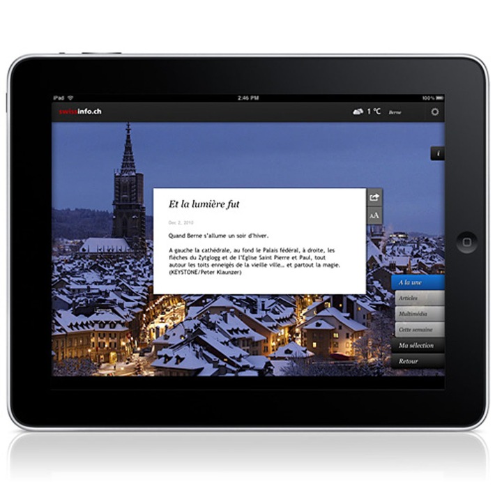 Communiqué de presseswissinfo.ch lance l'application iPad en 9 langues2010-12-13T14:42:00Berne (ots) - - Indication: Des images peuvent être téléchargées sous: