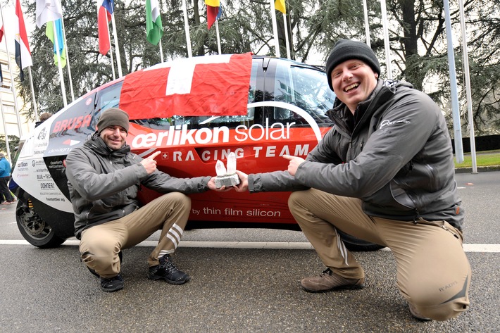 Après avoir parcouru environ 30000 km dans 16 pays dans des conditions météorologiques et routières souvent contraires, le Zerotracer remporte aujourd'hui devant son public genevois la «course zéro émission» débutée en août 2010. Cette équipe établit ainsi un record: c'est la première fois dans l'histoire qu'un véhicule électrique a parcouru une si grande distance en 80 jours. La «course zéro émission» se termine où elle a commencé: devant le bâtiment du siège des Nations-Unies à Genèvre. Ceci marque le terme de 80 journées riches en événements vécues par les trois équipes participantes venant de divers pays. Les conditions de la course ont souvent été très défavorables. La situation météorologique a alterné entre le gel, la neige, la pluie et la chaleur - auxquels se sont ajoutées des pistes de cailloux et des routes mauvaises semées de nids de poules. Pourtant, même les conditions les plus difficiles n'ont pas pu décourager l'équipe Racing Team d'Oerlikon Solar sur son Zerotracer. Rien n'a pu empêcher ce véhicule électrique à haute performance, qui a été construit par l'entreprise suisse Designwerk, de filer vers la victoire. Il ne suffisait pas en l'occurrence d'être simplement le premier à passer aujourd'hui la ligne d'arrivée devant le bâtiment des NU à Genève. Une série d'autres critères comme par exemple l'autonomie, la fiabilité du véhicule, l'efficience énergétique et même la sécurité et le design intervenaient dans l'évaluation sous forme d'un système de points. Dans les différents pays, les équipes ont été confrontées à des problèmes qu'elles devaient résoudre avec leurs véhicules non polluants. L'équipe Racing Team d'Oerlikon Solar a alors très bien fait ses preuves et a pu rapidement se hisser à une des premières places.