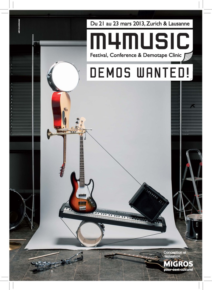 Communiqué de pressePour-cent culturel Migros: mise au concours de la Demotape Clinic 2013 / m4music recherche les meilleures démos de Suisse2012-11-14T11:15:04Zürich (ots) - Pour sa 15e édition, le festival de musique pop du Pour-cent culturel Migros m4music met au concours la Demotape Clinic, qui recherche les meilleurs morceaux d'artistes et de groupes suisses de talent. Les 22 et 23 mars 2013, des professionnels évalueront les soumissions les plus prometteuses dans le cadre du festival m4music. Les musiciens peuvent s'inscrire jusqu'au 13 janvier 2013 sur www.demotapeclinic.ch. A gagner: des prix d'une valeur totale de 17 000 francs et une participation à la compilation CD «The Best of Demotape Clinic 2013», regroupant les meilleurs titres. La Demotape Clinic est l'un des plus importants et des plus anciens concours musicaux de Suisse. Soutenu depuis de longues années par le Pour-cent culturel Migros, il est devenu une véritable institution pour les artistes et l'industrie du disque. Ce tremplin a déjà permis à des musiciens tels que Steff la Cheffe, Knackeboul et Domi Chansorn de se produire et d'obtenir un feedback de la part de professionnels. Chaque année, jusqu'à 800 artistes de Suisse alémanique, de Suisse romande et de Suisse italienne participent au concours. Le concours s'adresse aux musiciens évoluant dans les catégories pop, rock, electronic ou urban. Un premier jury écoute les morceaux reçus et sélectionne parmi eux les meilleures démos dans chaque catégorie. Leurs auteurs sont invités à la session live de la Demotape Clinic, où un second jury composé d'experts du monde de la musique évalue publiquement chacune des démos présentées. En collaboration avec la Fondation SUISA, le jury décerne aux gagnants le Fondation-SUISA-Award d'une valeur de 3000 francs chacun. L'artiste le plus prometteur des quatre catégories se voit en plus attribuer le prix «Demo of the Year», d'une valeur de 5000 francs. Last but not least, m4music produit - à titre d'apothéose du concours - la compilation CD «The Best of Demotape Clinic 2013». Infobox Les groupes et artistes suisses de talent évoluant dans les catégories pop, rock, electronic ou urban peuvent s'inscrire au concours dès maintenant et jusqu'au 13 janvier 2013. La session live de la Demotape Clinic se déroulera les 22 et 23 mars 2013 au Schiffbau à Zurich, à l'occasion du festival m4music du Pour-cent culturel Migros (du 21 au 23 mars 2013). Discussions, conférences et ateliers seront organisés en parallèle pour les musiciens et les fans de culture pop. Cet évènement est gratuit. Détails et inscription sur www.demotapeclinic.ch et www.m4music.ch * * * * * * Le Pour-cent culturel Migros est un engagement volontaire de Migros dans les domaines de la culture, de la société, de la formation, des loisirs et de l'économie. www.pour-cent-culturel-migros.ch Contact: Barbara Salm, responsable communication, Direction des Affaires Permalink: