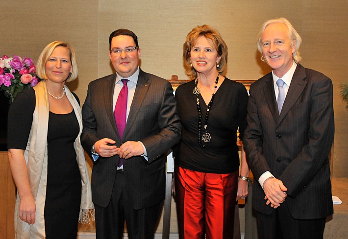 Charlotte Leber, fondatrice et directrice de la Fondation ART-THERAPIE crée en 2008 et son Président le Professeur Alain Golay ont brièvement exposé l'amplitude des divers programmes thérapeutiques (danse, peinture, musique) soutenus aussi bien au CHUV de Lausanne qu'aux hôpitaux universitaires et cantonaux de Bâle, Coire, Baden, Zurich, Saint-Gall, Winterthour et Lugano. Ils n'ont pas caché leur détermination à continuer le développement en Suisse de tous ces projets. L'artiste Michel Leeb était venu, en ami, offrir un spectacle qui contribua à établir une atmosphère très gaie et ... généreuse.