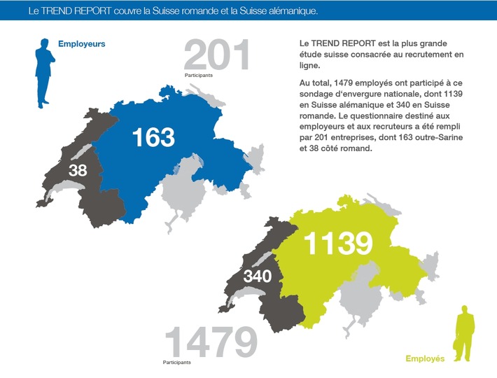 Communiqué de presseTREND REPORT 2014: Quoi de neuf dans le recrutement? (IMAGE)2014-05-16T14:09:22Zurich (ots) - Où les entreprises suisses publient-elles leurs offres d'emploi ? Quels sont les canaux de diffusion d'informations utilisés par les candidats pour se renseigner sur les employeurs potentiels ? Et quelles sont les répercussions de la « guerre des talents » ? Les réponses à ces questions - ainsi qu'à beaucoup d'autres - se trouvent dans la dernière version du rapport annuel suisse TREND REPORT, recrutement en ligne 2014. Pour la sixième fois déjà, Prospective Media Services S.A. a sondé le marché suisse du travail. Plus de 200 employeurs et près de 1500 travailleurs de la Suisse alémanique et de la Suisse romande ont participé à cette édition du TREND REPORT. Il s'agit ainsi du plus important sondage suisse sur le recrutement en ligne. Les employés et les employeurs ont été interrogés sur leurs habitudes et leurs préférences en matière de recherche d'emploi et de recherche d'informations sur les postes à pourvoir, ainsi que sur le processus de recrutement. L'étude révèle plusieurs développements intéressants, comme : - L'importance de Google est sous-estimée par les employeurs :