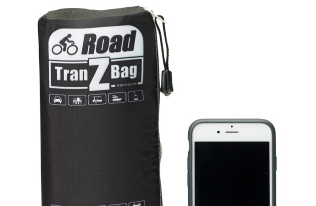 TranZbag.com. TranZbag ROAD. Sac de vélo pliable. iPhone comparaison / Texte complémentaire par ots et sur www.presseportal.ch/fr/nr/100021679 / L'utilisation de cette image est pour des buts redactionnels gratuite. Publication sous indication de source: "obs/TranZbag Velo Transporttasche/TranZbag.com"
