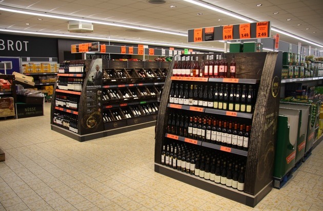 Weinregal neues Filialkonzept, Lidl Schweiz / Texte complémentaire par ots et sur www.presseportal.ch/fr/nr/100016795 / L'utilisation de cette image est pour des buts redactionnels gratuite. Publication sous indication de source: "obs/LIDL Schweiz"