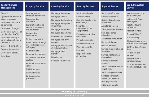 L'éventail des prestations de services de Vebego SA pour un Facility Service sur mesure. Texte complémentaire par ots et sur www.presseportal.ch/fr/nr/100058765 / L'utilisation de cette image est pour des buts redactionnels gratuite. Publication sous indication de source: "obs/Vebego AG"