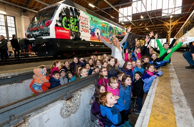 Le 8 avril, une soixantaine d'enfants, l'ex-Miss Suisse Christa Rigozzi, le comique Müslüm et quelque 150 autres invités issus des milieux de la culture et de la politique étaient rassemblés au dépôt historique des CFF à Erstfeld (UR) pour baptiser la loco du futur Mobilière et procéder à sa mise en circulation officielle. Cette oeuvre d'art sur rails va parcourir la Suisse pendant dix-huit mois. Et si tu construisais l'avenir?