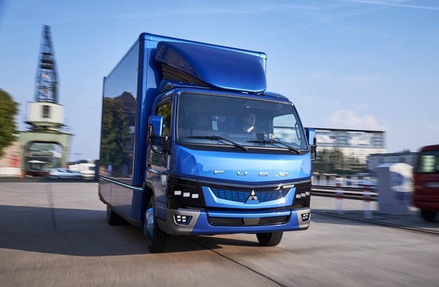 Fuso eCANTER, Exterior, mid-blue metallic, generator: DC 12 V 250 Amp, HV battery: 70 kWh, Engine power: 185 kW, curb weight: 2860 kg, payload: up to 4600 kg, seating capacity:3; Texte complémentaire par ots et sur www.presseportal.ch/fr/nr/100001544 / L'utilisation de cette image est pour des buts redactionnels gratuite. Publication sous indication de source: "obs/Mercedes-Benz Schweiz AG/Daimler AG"