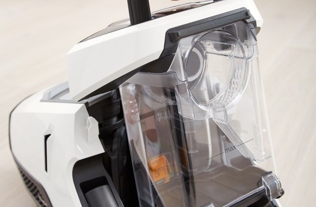 Le bac de l'aspiration est retiré en un tournemain et les grosses particules peuvent être vidées sur pression d'une touche, sans provoquer de nuage de poussière. Texte complémentaire par ots et sur www.presseportal.ch/fr/nr/100010726 / L'utilisation de cette image est pour des buts redactionnels gratuite. Publication sous indication de source: "obs/Miele Schweiz"