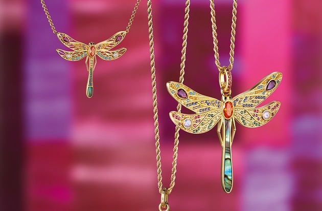 Full of lightness, the jewellery pieces of the new Spring/Summer 2019 collection from THOMAS SABO combine paradisiacal colours with a graphic-modern visual language and a Boho-inspired look. In detail, up to 130 hand-set stones lend unique variety to the ornate dragonfly pendants and amulets. Picture exclusively for editorial use. Texte complémentaire par ots et sur www.presseportal.ch/fr/nr/100057515 / L'utilisation de cette image est pour des buts redactionnels gratuite. Publication sous indication de source: "obs/THOMAS SABO GmbH & Co.KG"