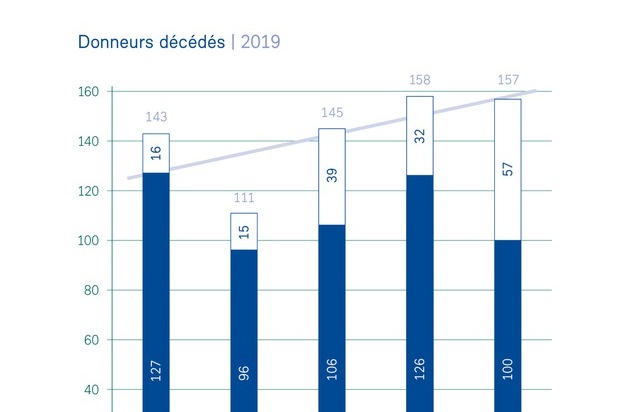 La Fondation nationale suisse pour le don et la transplantation d'organes Swisstransplant compte 157 donneurs d'organes pour l'année passée. Fin 2019, 1415 personnes attendaient un organe salvateur. Un peu plus d'un an après le lancement du Registre national du don d'organes, environ 80 000 personnes s'étaient inscrites. L'initiative en faveur du don d'organes et le contre-projet indirect du Conseil fédéral ont permis d'attirer l'attention politique sur le sujet du don d'organes. En outre, la Suisse prendra pour la première fois en 2020 la présidence du Comité européen sur la transplantation d'organes du Conseil de l'Europe par l'intermédiaire de PD Dr Franz Immer, directeur de Swisstransplant.