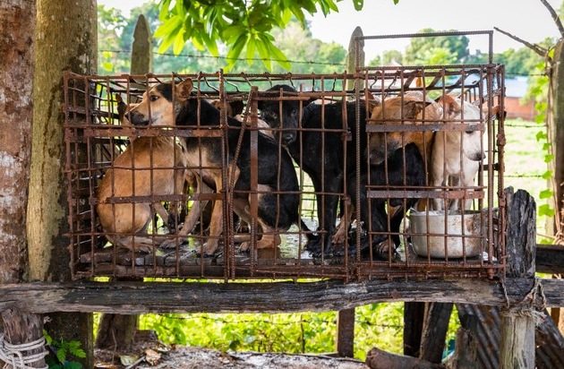 Afin de mettre durablement un terme au commerce brutal de la viande de chien et de chat en Asie du Sud-Est, QUATRE PATTES a lancé une campagne au niveau international et national au Cambodge, au Vietnam et en Indonésie. © QUATRE PATTES